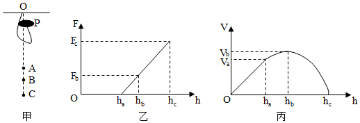 1.小明在老师的指导下用小球和弹性很好的轻质橡皮筋等器材进行了如下实验与探究:让一系于橡皮筋一端的小球从某悬挂点O的正下方P点由静止释放如图甲所示,整个下落过程中,橡皮筋所受弹力F与小球下落高度h的关系如图乙所示;小球下落的速度v与下落高度h的关系如图丙所示。已知该轻质橡皮筋每受到0.2N的拉力就伸长1cm,经测量小球从P点下落到A、B、C三点的距离分别为:ha=0.4m,hb=0.6m,hc=0.9m。(不计空气阻力)