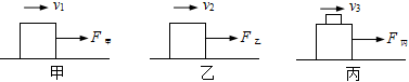 3.如图所示,同一木块在同一粗糙水平面上,先后以不同的速度被匀速拉动。甲图中速度为v1,乙图中速度为v2,丙图中木块上叠放一重物,共同速度为v3,且v1<v2<v3,匀速拉动该木块所需的水平拉力分别为F甲、F乙和F丙。下列关系正确的是( )
