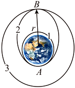 2021年10月16日,长征二号F火箭将神舟十三号顺利送入太空。假设图示三个轨道是神舟十三号绕地球飞行的轨道,其中轨道1、3均为圆形轨道,且轨道1为近地轨道。轨道2为椭圆形轨道,三个轨道在同一平面内,轨道2与轨道1相切于A点,与轨道3相切于B点,不计神舟十三号在变轨过程中的质量变化。已知地球表面重力加速度g,不考虑自转,地球半径R,B到地心距离r,则下列说法正确的是( )