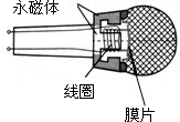 如图所示是动圈式话筒的部分结构,声波使振膜左右振动,连接在振膜上的线圈也随之一起振动,切割永磁体的磁感线产生电流,下列说法正确的是( )