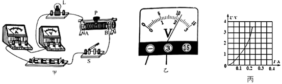 (3)排除故障后闭合开关S,将变阻器P移至某点时,电压表的示数如图乙所示,电压表的示数为V;要测量小灯泡的额定功率,应将滑片P向滑动(选填“A”或“B”);