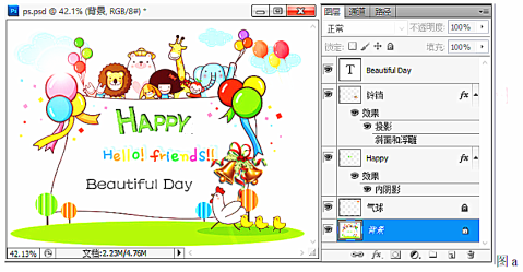 (2)按图a所示的图层设置,将作品存储为BMP格式的图象,该BMP图象中的“铃铛”没有没有(选填:有/没有)“斜面和浮雕”效果.