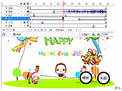 小张使用flash软件制作动画,部分界面如图b所示.请回答下列问题: