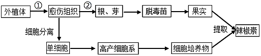 (1)图中①和②分别表示辣椒组织培养中细胞的 脱分化脱分化和 再分化再分化过程。