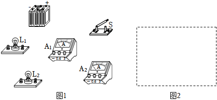 1.根据如图1所示的元件(L1、L2规格相同)设计一个电路,要求:①开关闭合后,L1与L2并联,两灯都亮;②开关断开后两灯都灭;③电流表A1示数大于A2示数。