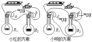 2.小红与小明分别用如图所示的装置探究电流一定时,电流产生的热量与电阻的关系,他们分别将两段阻值不同的电阻丝(R1<R2)密封在完全相同的烧瓶中,并通过短玻璃管与气球相连。(设他们所用的各种器材性能相同)