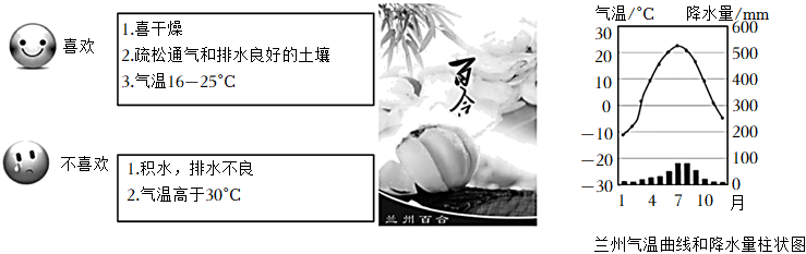 分析兰州百合生长的有利自然条件:温带大陆性气候,全年降水较少温带大陆性气候,全年降水较少、地势起伏大,排水良好,地势起伏大,排水良好,。