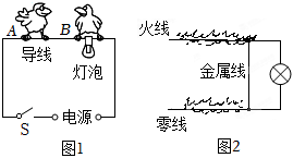 3.如图1所示,站在裸露导线上的两只小鸟,当开关闭合后最可能会发生触电事故的是小鸟 (选填“A”或“B”);如图2所示的电路中,开关闭合后,电线燃烧起来了,产生的原因是 (选填“总功率过大”或“短路”)。