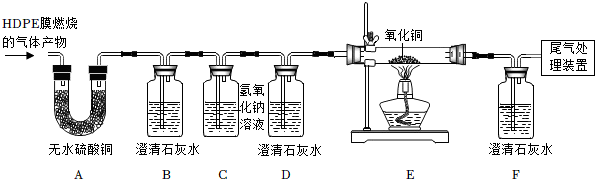【实验探究】如图所示,先通入氮气一会儿,再将HDPE膜样品在氧气中燃烧的气体依次通过以下装置。