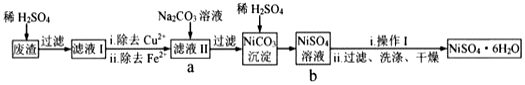NiSO4•6H2O易溶于水,其溶解度随温度升高明显增大。以电镀废渣(主要成分是NiO,还有CuO、FeO等少量杂质)为原料制备该晶体的流程如图: