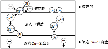 科学家发现对冶金硅进行电解精炼提纯可降低高纯硅制备成本,相关电解槽装置如图所示,用Cu-Si合金作硅源,在950℃利用三层波熔盐进行电解精炼、有关说法不正确的是( )
