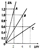 16.如图所示,A、B、C为三个通电导体的I-U图象,由图可知,电阻最小的导体是(选填“A”、“B”、“C”);若在导体B两端加上8V电压时,通过导体B的电流是;若把导体B和C并联后,接在4V的电源两端,干路中的电流为A。组卷:105引用:2难度:0.4 -