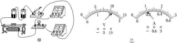 (3)若某次测量时电压表和电流表的示数如图乙所示,则电压表的示数为 V,灯泡的电阻RL=。