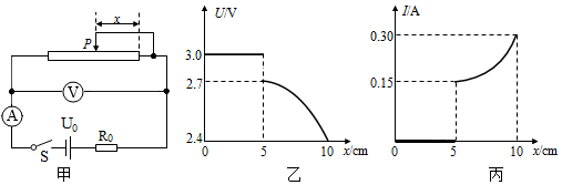 10.物理兴趣小组的同学,为了探究滑动变阻器的电流、电压关系,按照如图甲的电路进行实验。组装好电路后,闭合开关,让滑片P从最右端开始向左滑动,测量滑片到最右端的距离x,同时观察电压表、电流表的示数,记录数据并绘制图象。电压表读数与x的关系如图乙所示,电流表读数I与x的关系如图丙所示。根据题目信息,以下说法中正确的是( )