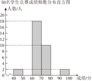 22.2022年是我国航天事业辉煌的一年,神舟十四号和神舟十五号两个飞行乘组6位航天员在太空会师,在神州大地上掀起了航天热潮.某学校为了解学生对我国航天事业的知晓情况,在全校范围内开展了航天知识竞赛,学校随机抽取了50名学生的成绩,整理并绘制了如下不完整的频数分布表和频数分布直方图.