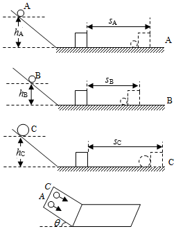20.如图是探究“物体的动能大小与哪些因素有关”的实验装置图。其中,mA=mB<mC,hA=hC>hB。