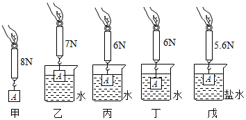 (3)比较实验丙、戊可知:浸没在液体中的物体受到的浮力的大小跟 有关;该物块的体积为 m3,盐水的密度为 kg/m3;