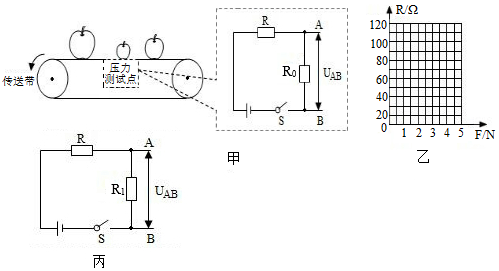 (1)据压敏电阻R的阻值随压力变化关系表,在图乙中作出图线;压力F(N) 0 1