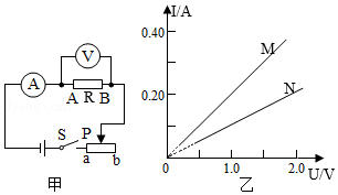 ③小燃选用5Ω和10Ω的两只电阻分别进行实验后,由实验数据画出的图象如图乙所示,其中M图象对应的阻值为 Ω的电阻。