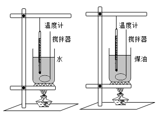 (1)取相同质量的水和煤油放入两个相同的容器里,用完全相同的两个酒精灯对它们加热的目的是 ,加热时使用搅拌器,这是为了 。物质 质量/g 初温/℃ 末温/℃ 加热时间/min 水 200 20 45 5 煤油 200 20 70 5