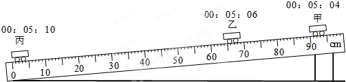 (1)请你根据图示填写下表中小车由甲至丙所用的时间为 ;平均速度为 。