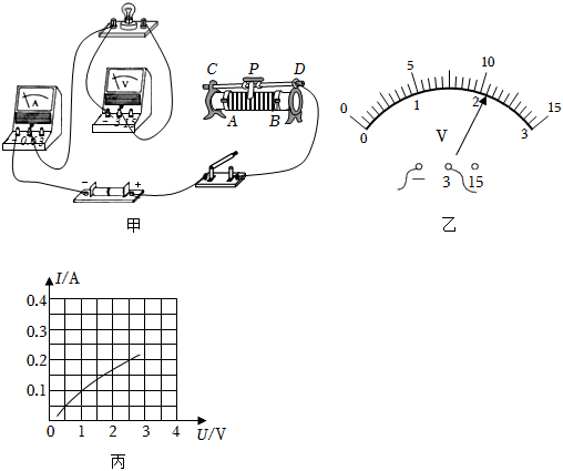 (4)通过移动滑动变阻器滑片P记录了多组数据,并作出了如图丙所示的Ⅰ-U图象。由图可知小灯泡正常发光时的电阻为Ω。
