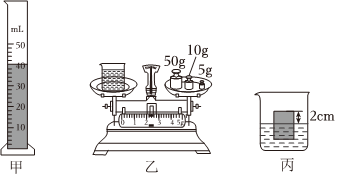 (2)“爱国”小组将一个正方体物块放入盛水的大烧杯中如图丙所示,待物块静止时,物块露出水面部分的高度为2cm。接着将一个50g的砝码慢慢放到物块正中央,稳定时物块的上表面刚好与水面相平。则物块排开水的重力比没有放砝码时增加了 N,测得物块的密度为 kg/m3.