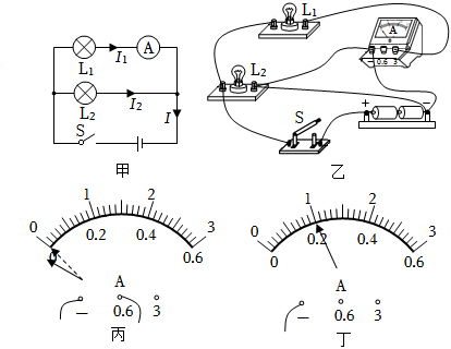 (5)实验开始后,他测出了L1支路上的电流I1=0.8A,然后他把电流表依次接入电路分别测试出L2支路电流I2、干路电流I,两次测得的结果都如图丁所示,则I2=A、I=A。小明由此数据得出并联电路中干路电流和各电路电流的关系是 (写关系式即可);