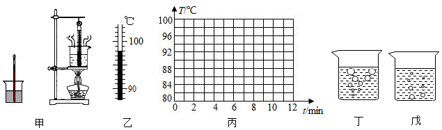 (5)为了把这次探究活动留个纪念,小明拍了两张照片如图丁、图戊。其中图 是水在第10分钟时的情景。