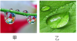 14.我们常常会看到树枝和树叶上有一些水珠,甲图中看到水珠后面远处景物是倒立的;乙图中透过树叶上的水珠观察到树叶清晰的叶脉。下列说法正确的是( )组卷:171引用:4难度:0.7