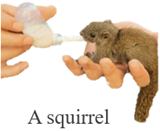 Together,the girls walked into the center.After the presentation,a keeper showed them how to hold the bottle of milk for baby squirrels.Then the girls started to feed their own baby squirrels.