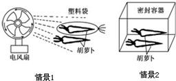 13.现有如下一个假设:水果和蔬菜切开后,质量的变化解释为是由于它们内部水分散失所致,如图所示的两个试图验证该假设的实验方案的部分情景(实验材料均是剖开的胡萝卜)。