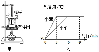 22.小军和小华分别利用图甲的相同装置探究水沸腾时温度变化的特点,当水温接近90℃时,每隔0.5分钟记录一次温度,并绘制出了如图乙的水温与时间关系