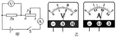 12.一学生按照图甲所示的电路图做实验。此时两表示数如图乙所示,电压表的示数为V,则电热丝电阻Rx的阻值为Ω.已知电热丝Rx和滑动变阻器的最大阻值相等,滑片P在b端时,电热丝的发热功率为Pb,滑片P在a端时,电热丝的发热功率为Pa,那么Pa:Pb=。(不考虑电热丝阻值随温度的变化)