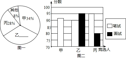 图二是某同学根据上表绘制的一个不完全的条形图.测试项目 测试成绩/分 甲 乙 丙 笔试 92 90 95 面试 85 95 80