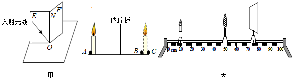(1)小明在探究光的反射定律时,发现用前后可折的纸板(如图甲)不仅能呈现光路,还能探究反射光线、入射光线和法线是否。