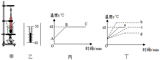 (2)如图丙是根据实验数据描绘出的海波温度随时间变化的图象,海波熔化过程对应丙图线中的 段(选填“AB”或“BC”),其熔点为 ℃。