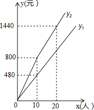 21.盘锦红海滩景区门票价格80元/人,景区为吸引游客,对门票价格进行动态管理,非节假日打a折,节假日期间,10人以下(包括10人)不打折,10人以上超过10人的部分打b折,设游客为x人,门票费用为y元,非节假日门票费用y1(元)及节假日门票费用y2(元)与游客x(人)之间的函数关系如图所示.