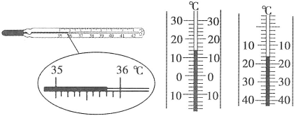 16.如图所示三支温度计的读数分别是甲是 ℃,乙是 ℃,丙是 ℃。