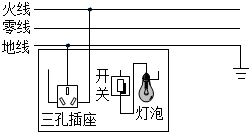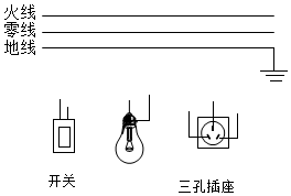 15.请在图中用笔画线代替导线将控制灯泡的开关、灯泡以及三孔插座接入家庭电路中。