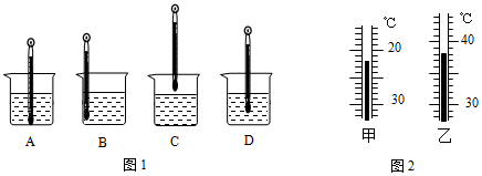 19.使用温度计时,首先要观察它的量程和认清它的 。小强在用温度计测量烧杯中液体温度时读取了四次数据,每次读数时温度计的位置如图1所示,其中正确的是 。图2中所示的是用温度计分别测得的冰和水的温度,那么冰的温度是 ℃,水的温度是 ℃。