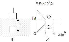6.预计2020年通车的雨城区“大兴二桥”在施工时,要向江中沉放大量的施工构件。如图甲所示,假设一正方体构件从江面被匀速吊入江水中,在沉入过程中,其下表面到水面的距离h逐渐增大,构件所受浮力F1、钢绳拉力F2随h的变化如图乙所示(g取10N/kg)。下列判断正确的是( )