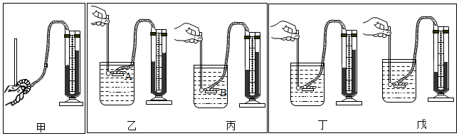 (3)把探头分别浸入装有水和酒精两个杯子中,其状态如图丁、戊所示,由此可以分析得到,液体内部压强还与 有关。由这个关系判断,图 中的液体是酒精。组卷:130引用:2难度:0.5
