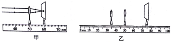 (1)如图甲,让一束平行光正对凸透镜照射,移动光屏,直到光屏上出现一个最小最亮的光斑。如图甲所示,则该凸透镜的焦距为cm。