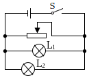 6.为了学习和生活的方便,小宇同学想在家中安装两盏电灯,用一个开关控制两盏灯的同时,还能让其中的一盏灯的亮度可以调节。如图电路符合要求的是( )