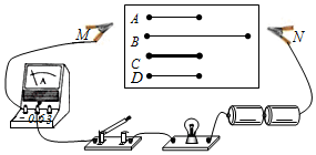 小明先后把电流表接到a、b、c三处,测量数据如下表。
