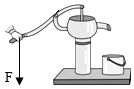 19.如图中活塞抽水机的柄是一根弯曲的杠杆,请画出动力F的力臂L。