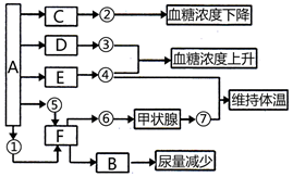 (2)在寒冷的环境中,机体能通过神经调节促进E的分泌活动,该过程的反射弧是(用文字、字母和“→”表示);此时人体细胞中酶的活性(填“增强”、“减弱”或“几乎不变”)。