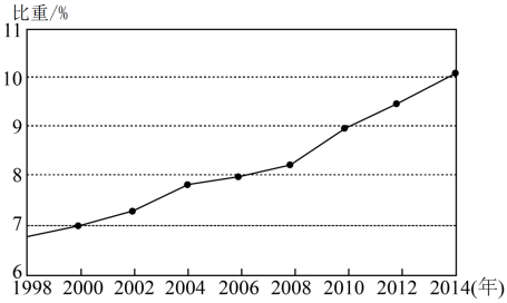 材料二:当一个国家或地区65岁及以上人口占人口总数的7%,即意味着这个国家或地区进入到老龄化社会。如图为1998~2014年我国65岁及以上人口占人口总数变化趋势图。