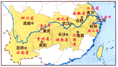 3.长江经济带覆盖上海、江苏、浙江、安徽、江西等11个省市,面积约205万平方千米,人口和生产总值均超过全国的40%,该经济带横跨我国东中西三大区域,具有巨大发展潜力,如图为长江经济带范围示意图,据图文资料完成21~22题。